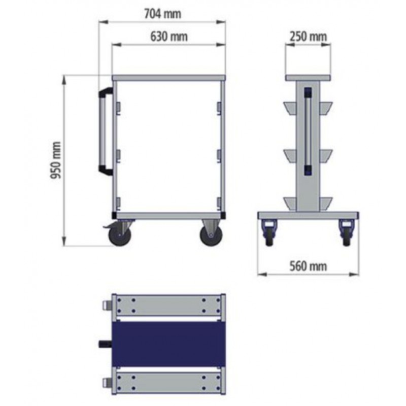 Celokovový manipulační stolek pojízdný 3 police Tona Expert