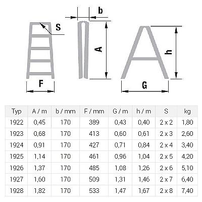 | Schůdky 5-stupňové, výška 104 cm, oboustranné | |