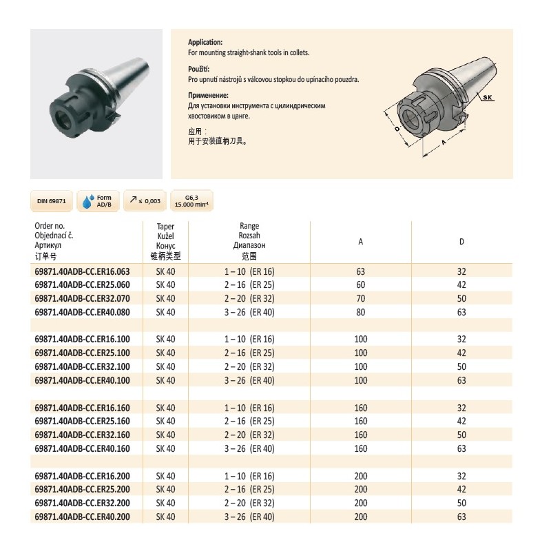 Kleštinový upínač SK40 ER25 délka 60