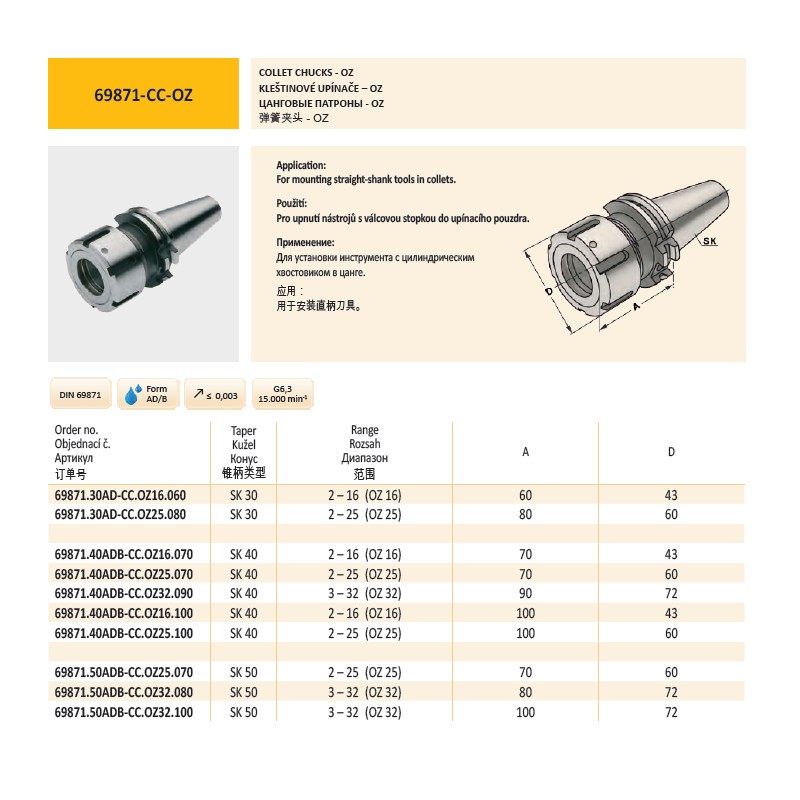 Kleštinový držák SK40 OZ25 délka 70 mm
