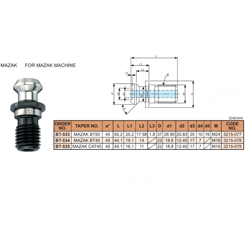 Zatahovací stopka MAZAK BT-535 pro ISO40