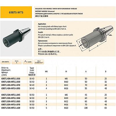 Držák SK40 Morse MTS-1 frézovací, délka 50 mm