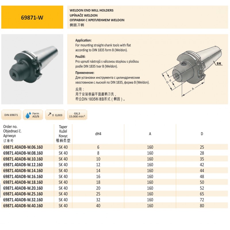 Upínač SK40 WELDON pr. 10 mm, délka 160 mm