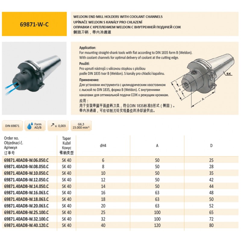 Upínač SK40 WELDON pr. 10 mm, délka 50 mm s kanálky