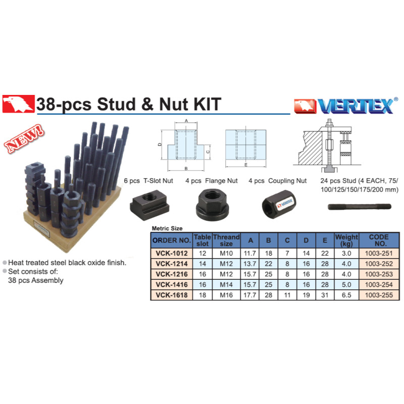 Sada 38 ks upínacích prvků M12 pro T-drážku 14 mm