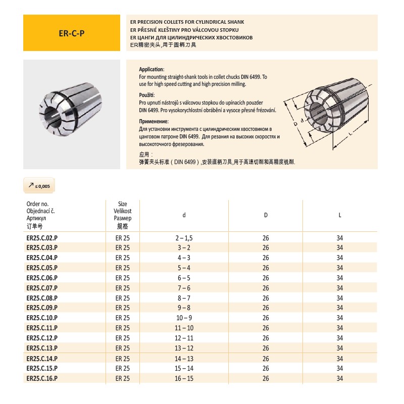 Kleština přesná ER25 pro 16 - 15 mm (př. 0,005mm)
