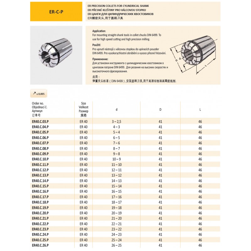 Kleština přesná ER40 pro 7 - 6 mm (př. 0,005mm)