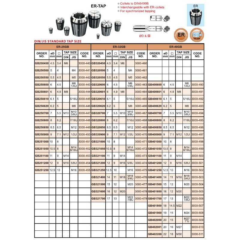 | Závitovací kleština ER-40GB pro závitník - průměr 22,0 x 18,0 | |