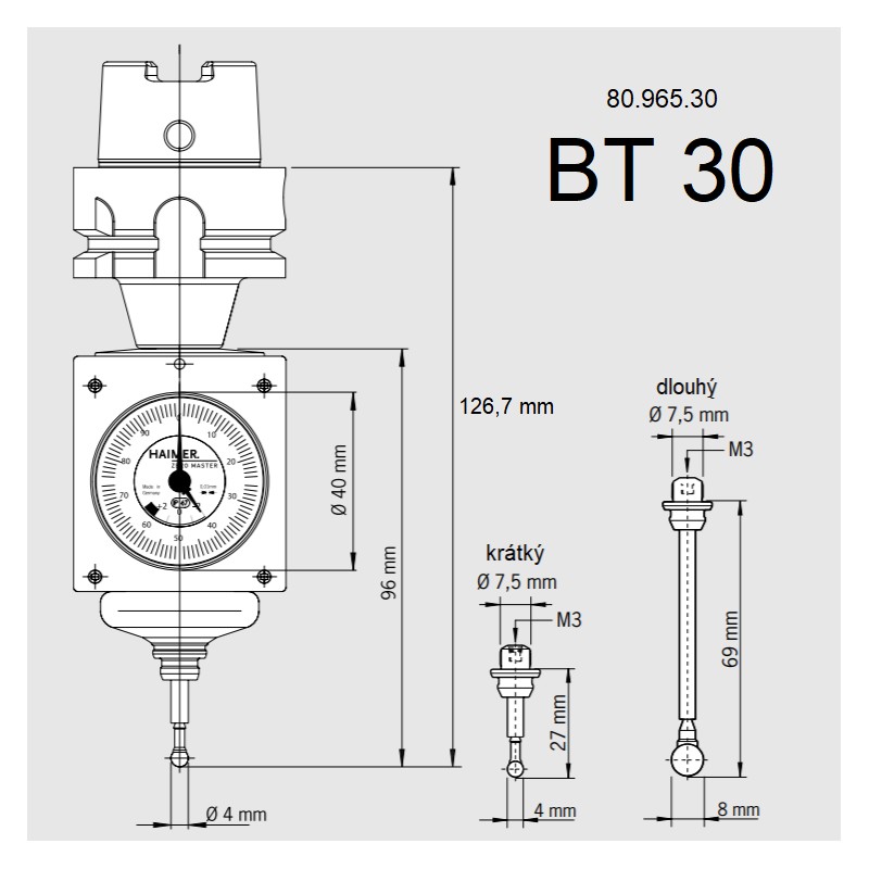 Univerzální 3D Taster s kuželem BT30, Zero Master