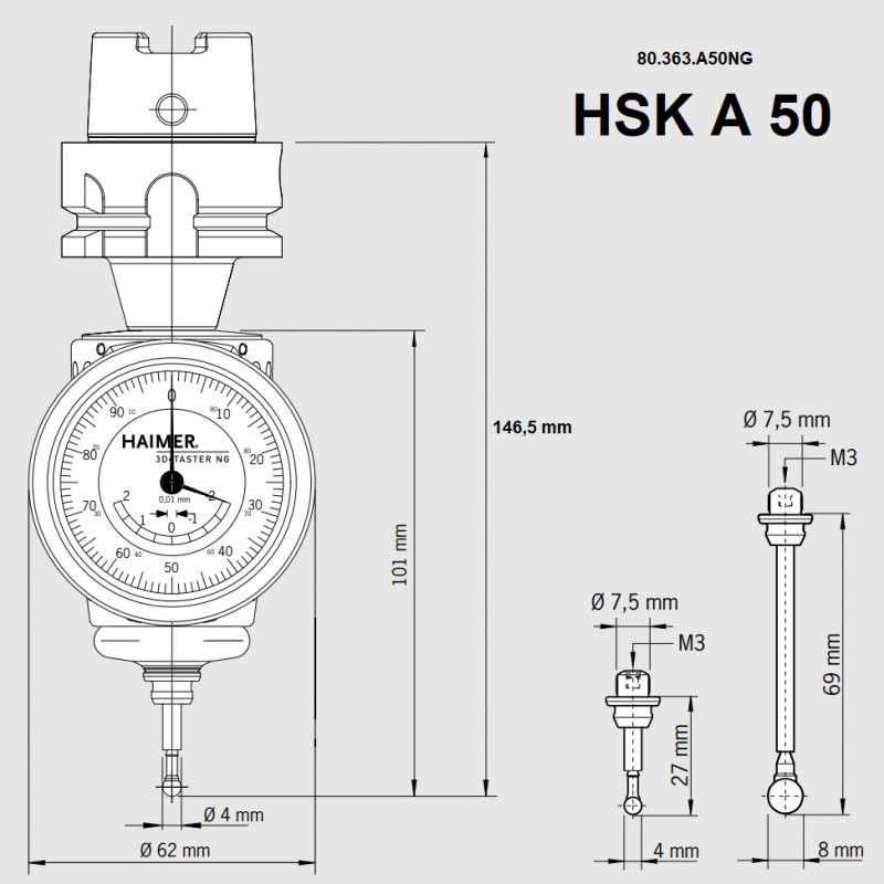 Univerzální 3D Taster s kuželem HSK A50 - nová generace