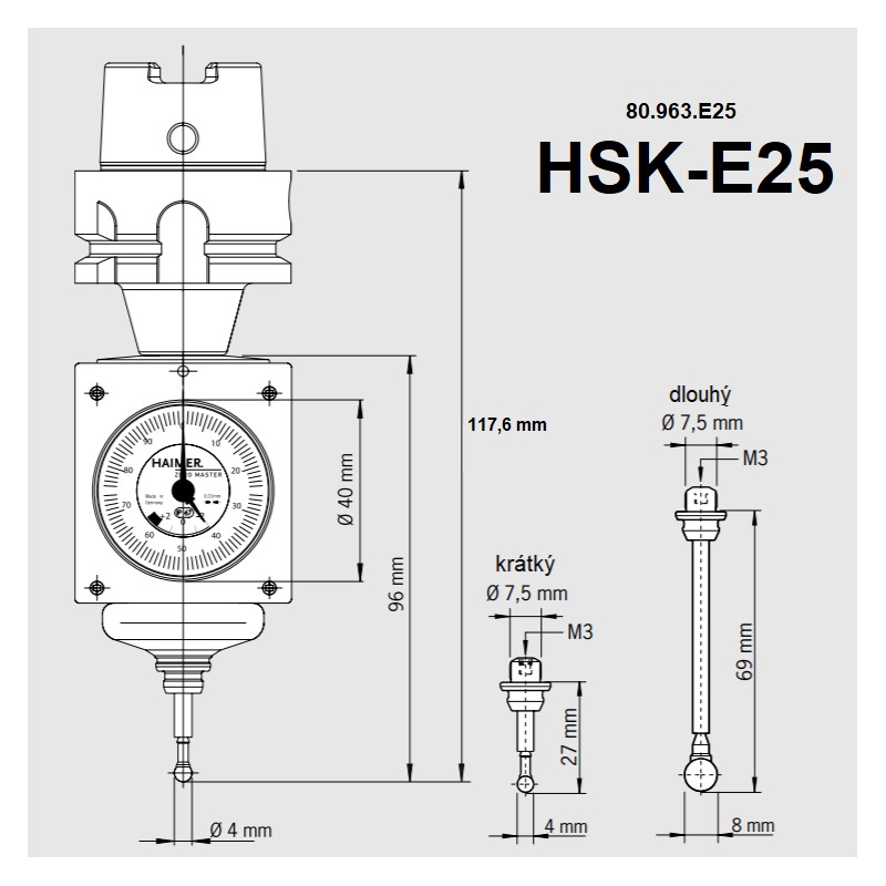 Univerzální 3D Taster s kuželem HSK E25, Zero Master