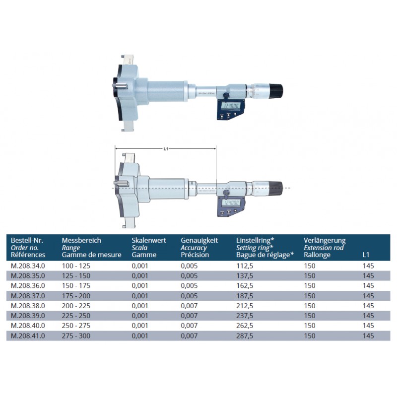 Digitální mikrometr - 2bodový dutinoměr 3-4 mm, rozlišení 0,001 mm, IP65