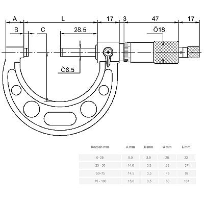 Vnější mikrometr 0 - 25 mm, DIN 863