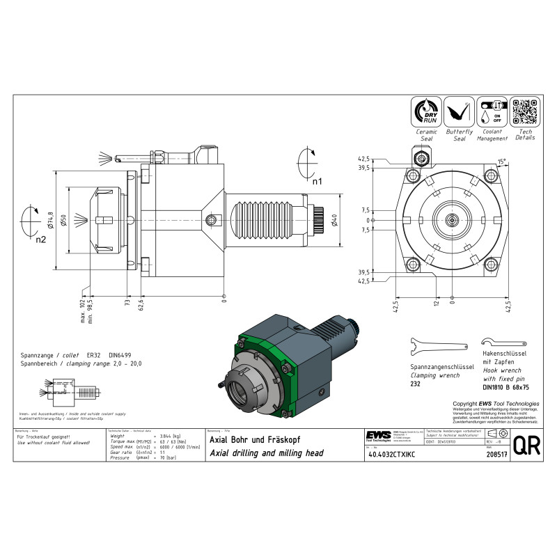 Kleština utěsněná ER32 - 6 mm