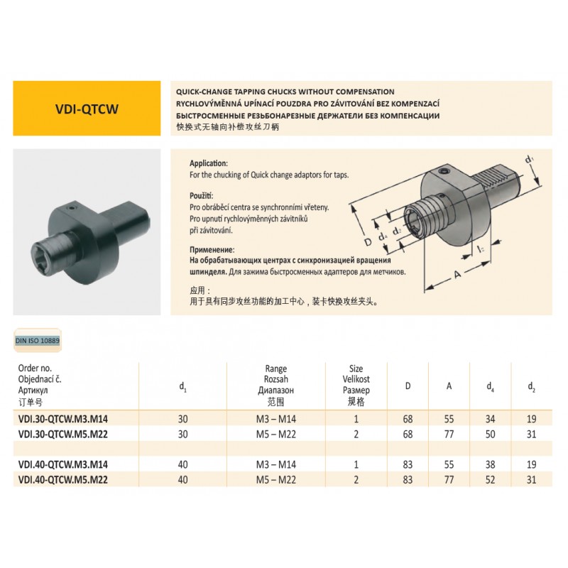 Rychlovýměnný držák VDI40 pro závitování M5 - M22 bez kompenzace