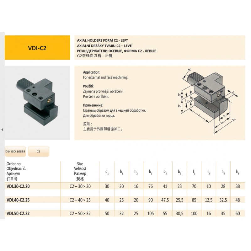 Axiální držák VDI40 tvaru C2 – levý pro 25 mm