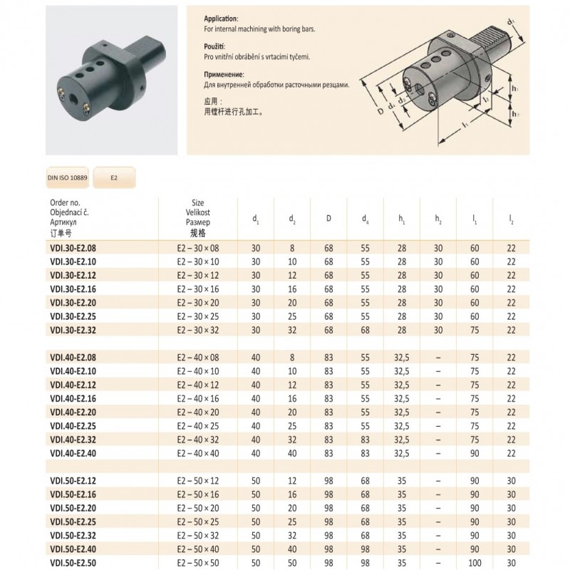 Přímý držák VDI40 tvaru E2 - 25 mm