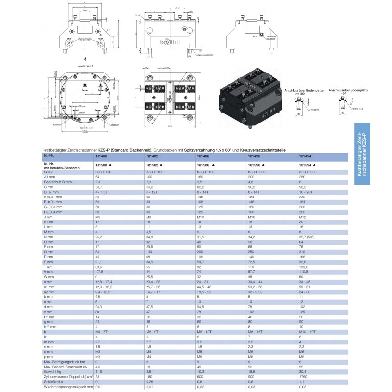 | Hydraulicky ovládaný středový svěrák KZS-H 160 mm, ozubení 1,5 x 60°, standard | |