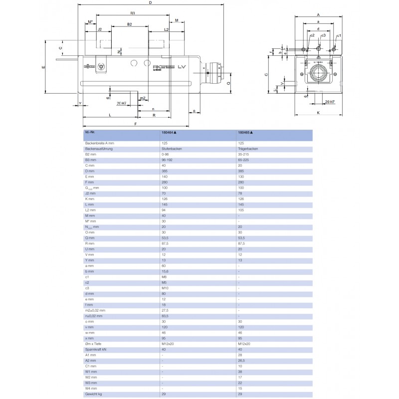 Strojní NC svěrák RÖHM RKE-LV 125 mm s posilovačem a stupňovíítými čelistmi