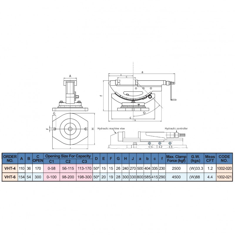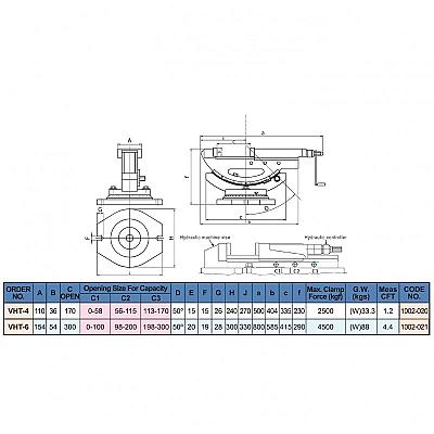 | Naklápěcí hydraulický svěrák, šíře 110 (VHT-4) s otočnou deskou | |