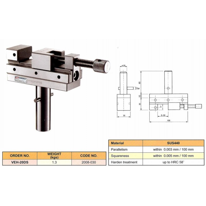 | Nerezový svěrák VEH-20DS pro elektroerozivní obrábění (EDM) | |