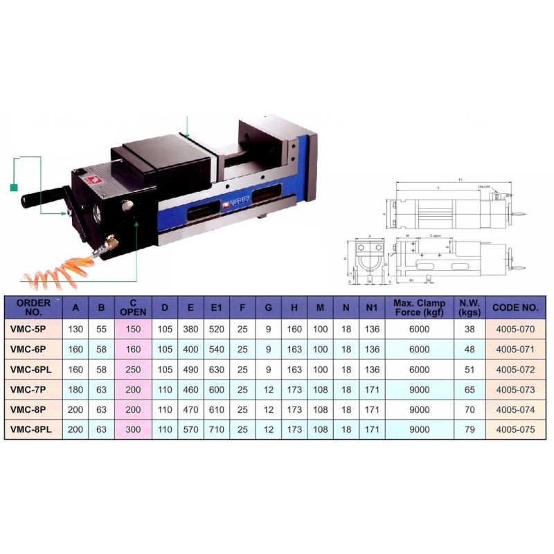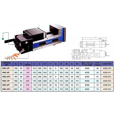 | Pneumatický strojní svěrák, šíře 160, rozevření 250 mm, VMC-6PL | |