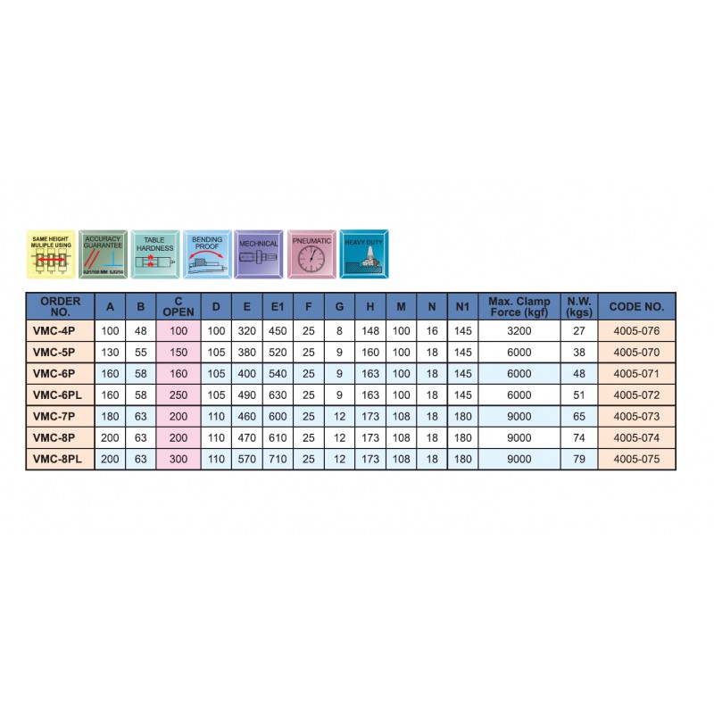 | Pneumatický strojní svěrák, šíře 200, rozevření 300 mm, VMC-8PL | |