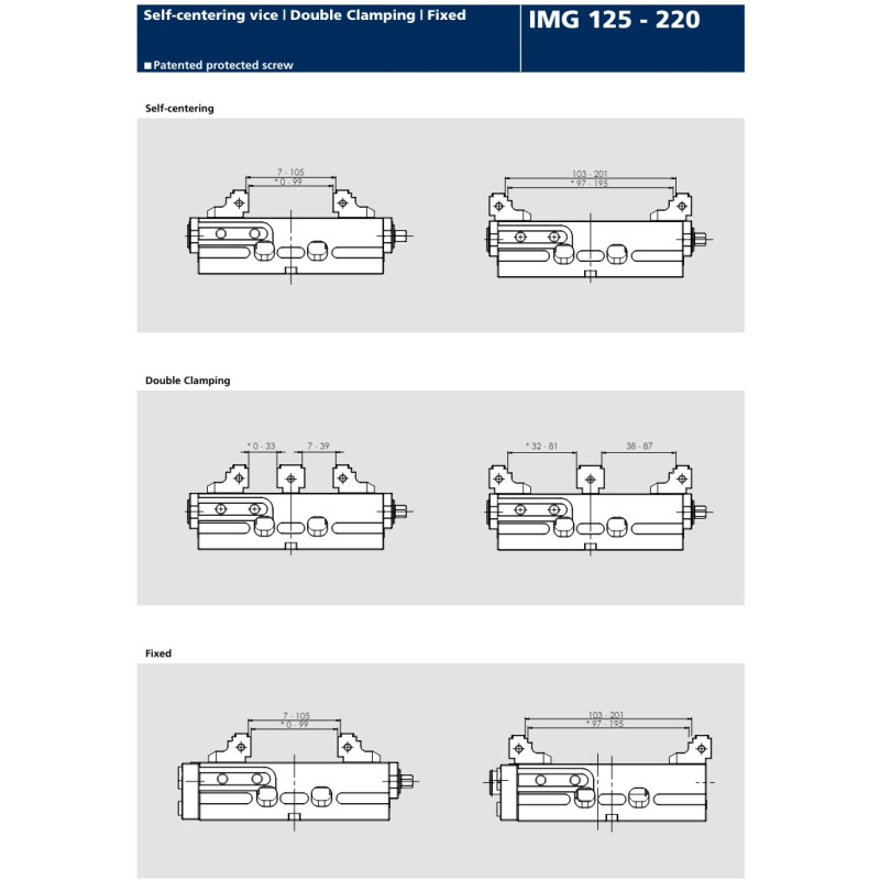 5-osý svěrák IMG 125-220 s čelistmi Basic