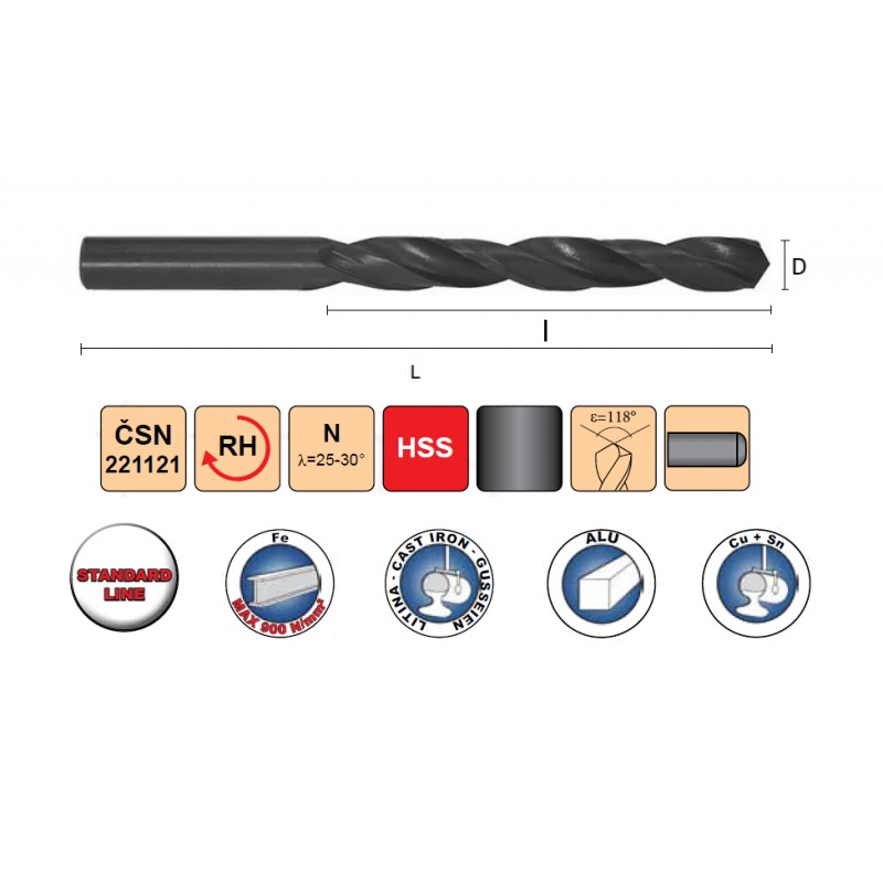 Vrták 09,00 mm - 125/81 RN HSS na ocel, litinu, hliník