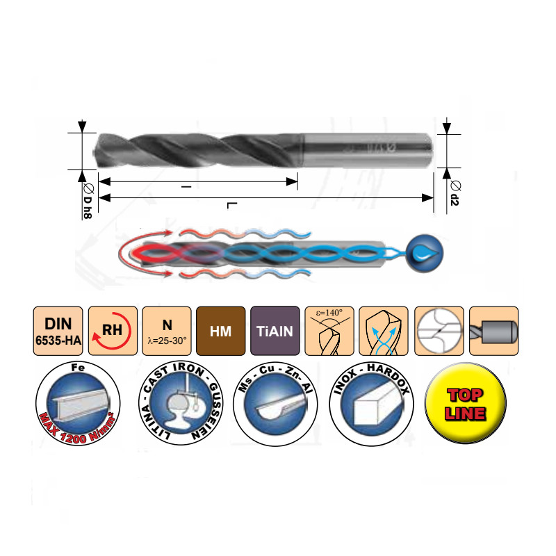 | Vrták 10,80 - 118 mm TK + TIAIN s vnitřním chlazením | |
