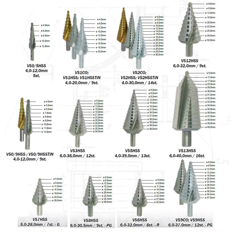 Vrták stupňovitý HSS 16 st./6-40 mm - stopka 13 mm
