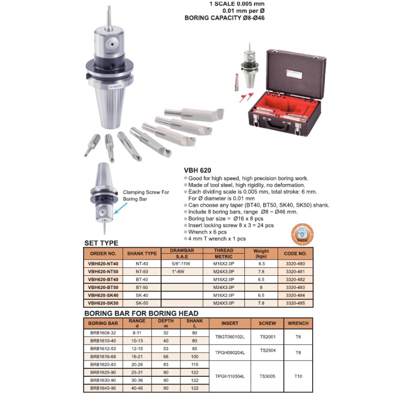Vyvrtávací hlava BT40, rozsah 8 - 46 mm, VBH620