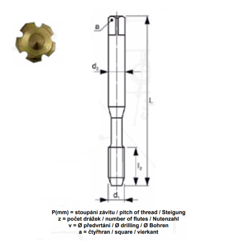 Tvářecí závitník M8 x 1,25 6GX HSSCO5+TiN s mazací drážkou