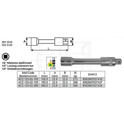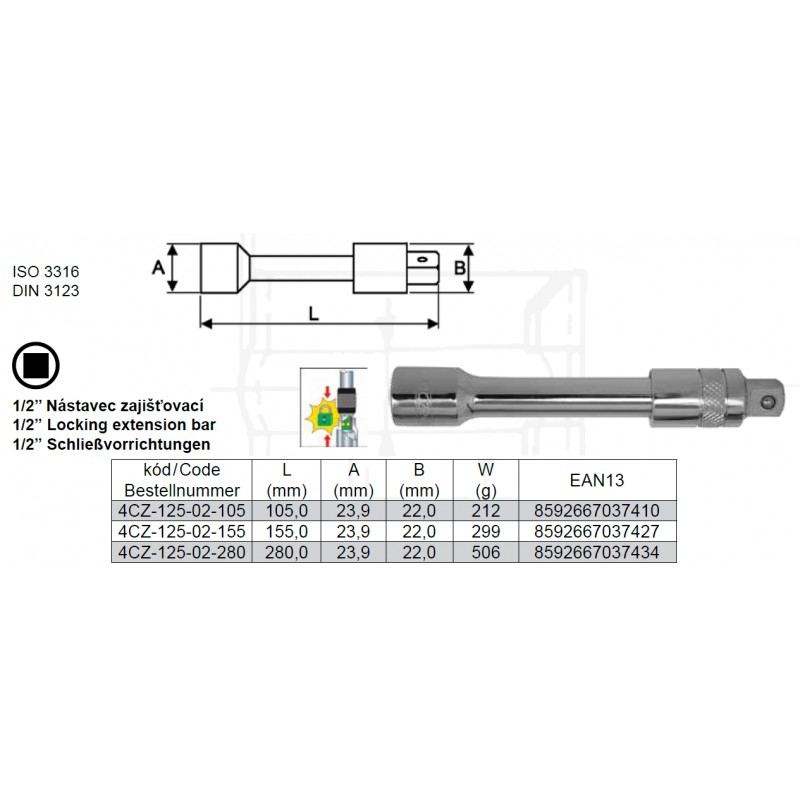1/2" prodlužovací nástavec 75 mm Tona Expert