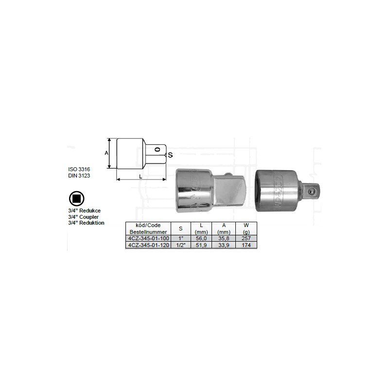 3/4’’ 18dílná sada nářadí 19-55mm + ráčna 24 zubů 4CZech