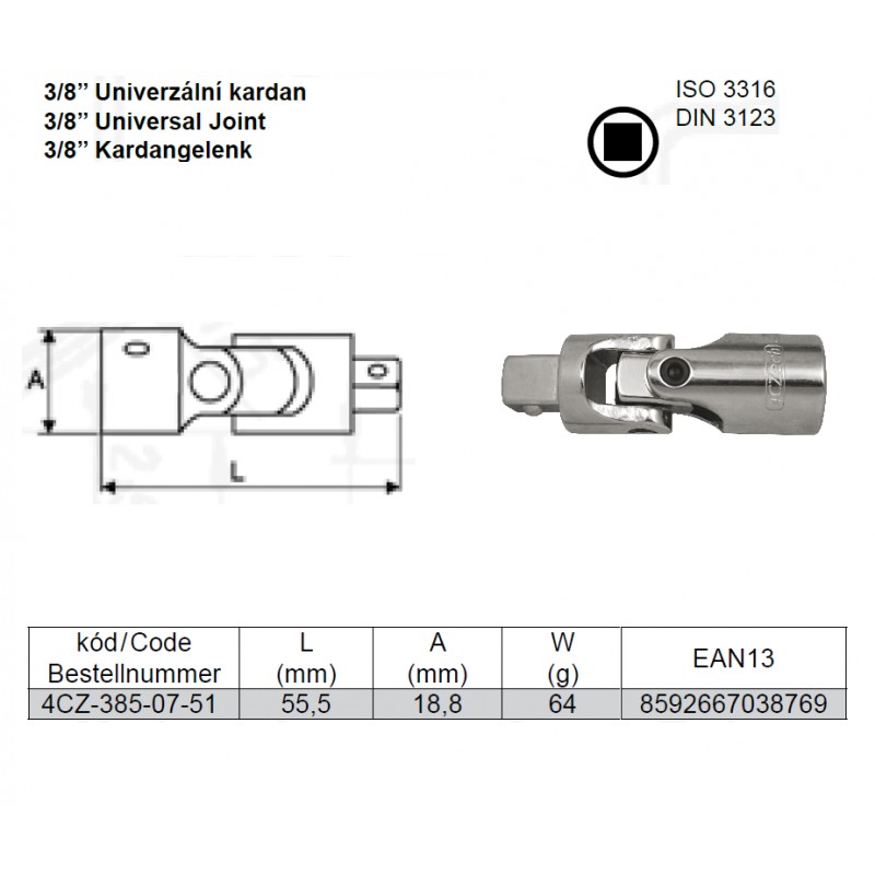 3/8’’ Nástavec zajišťovací 100 mm 4CZech