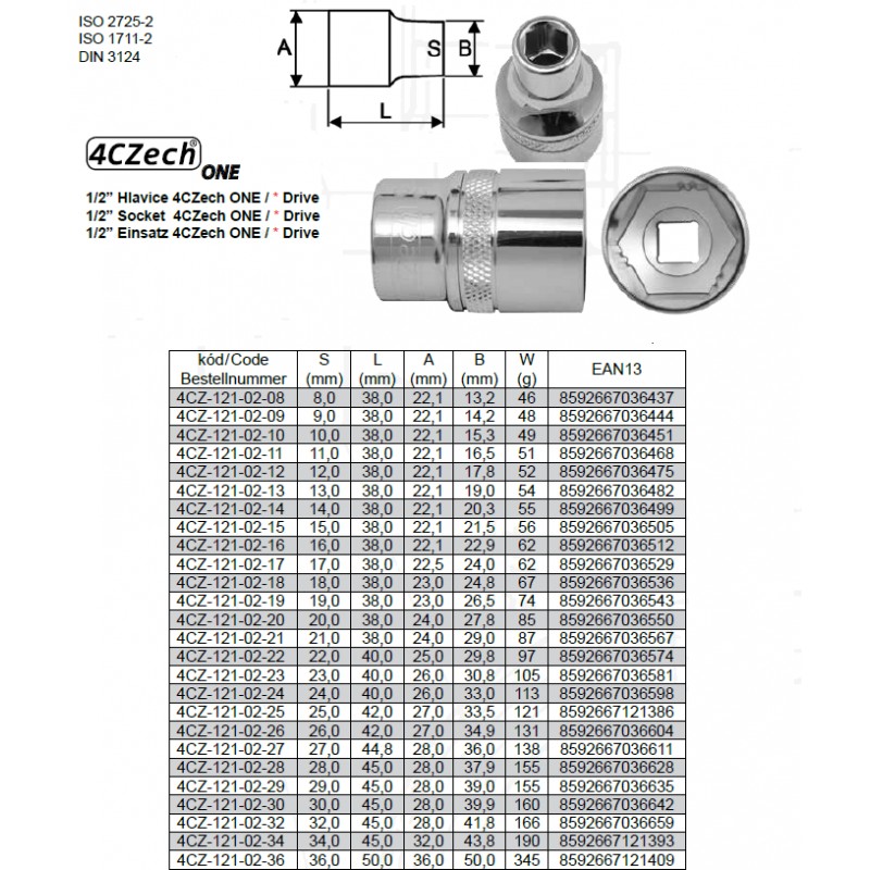 1/2’’ Adaptér na bity 10 mm HexF