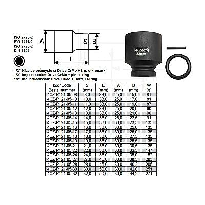 1/2” Hlavice průmyslová - 16 mm šestihranná CrMo + trn, o-kroužek