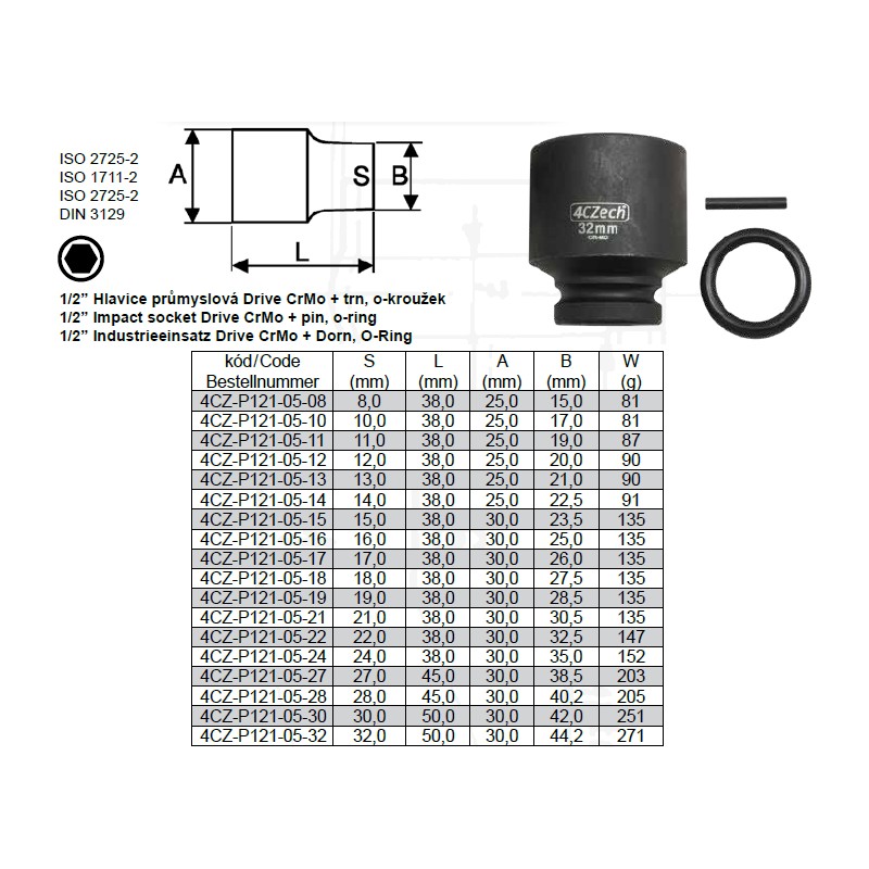 1/2’’ Nástavec 4CZech zajišťovací 155,0 mm