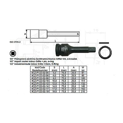1/2” Hlavice průmyslová TORX E 12 - CrMo + trn, o-kroužek