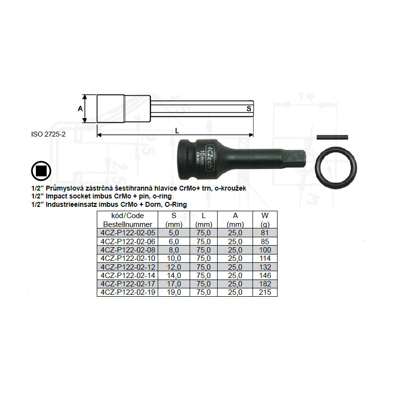 1/2” Hlavice průmyslová TORX E 12 - CrMo + trn, o-kroužek