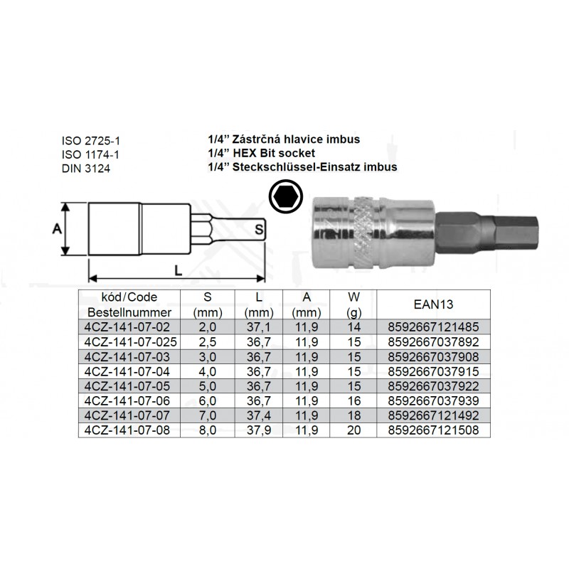 1/4’’ Zástrčná hlavice 4CZech imbus 4,0 mm