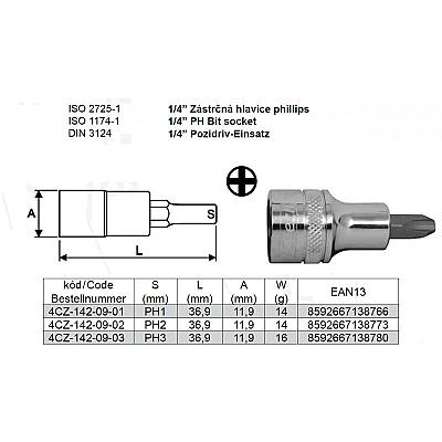 1/4” Zástrčná hlavice phillips PH2 - 4CZech
