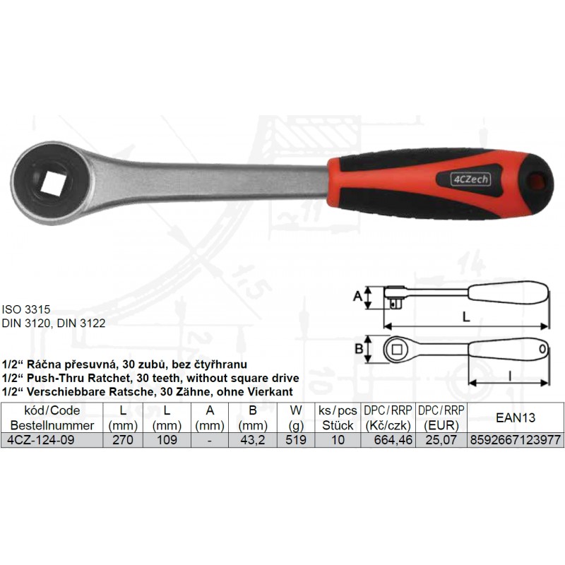 Čtyřhran do přesuvné ráčny 1/2” 4CZech