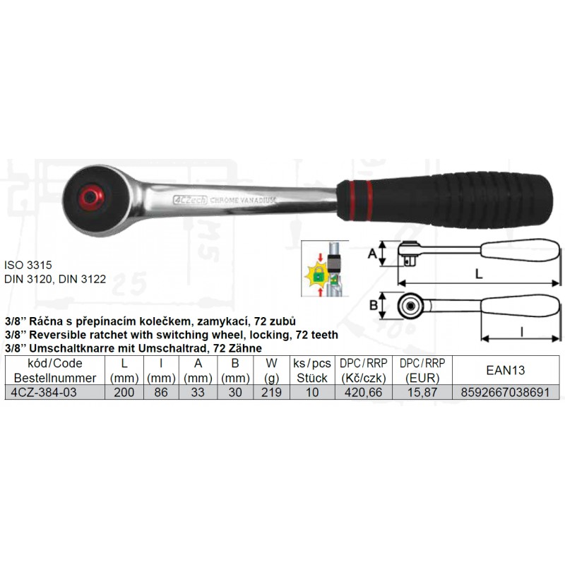 3/8’’ Nástavec zajišťovací 100 mm 4CZech