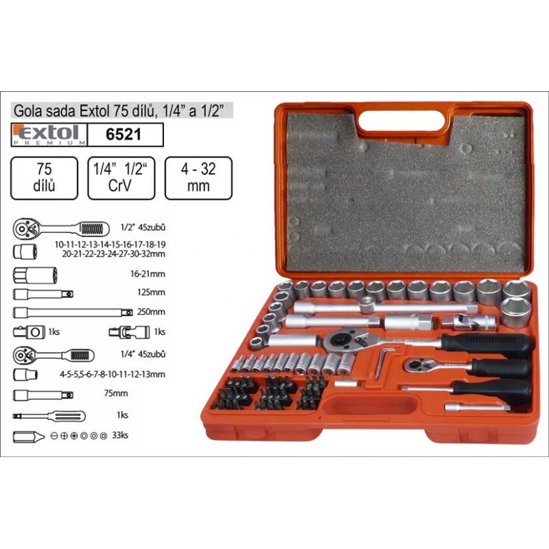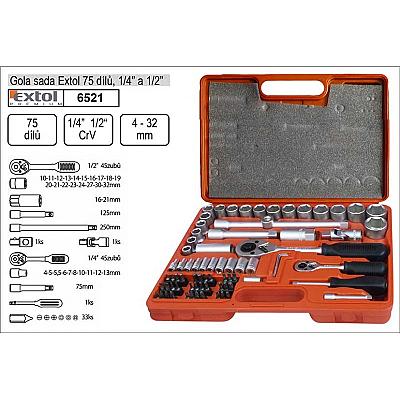 Gola sada 1/2", 1/4" 75-dílná, EXTOL