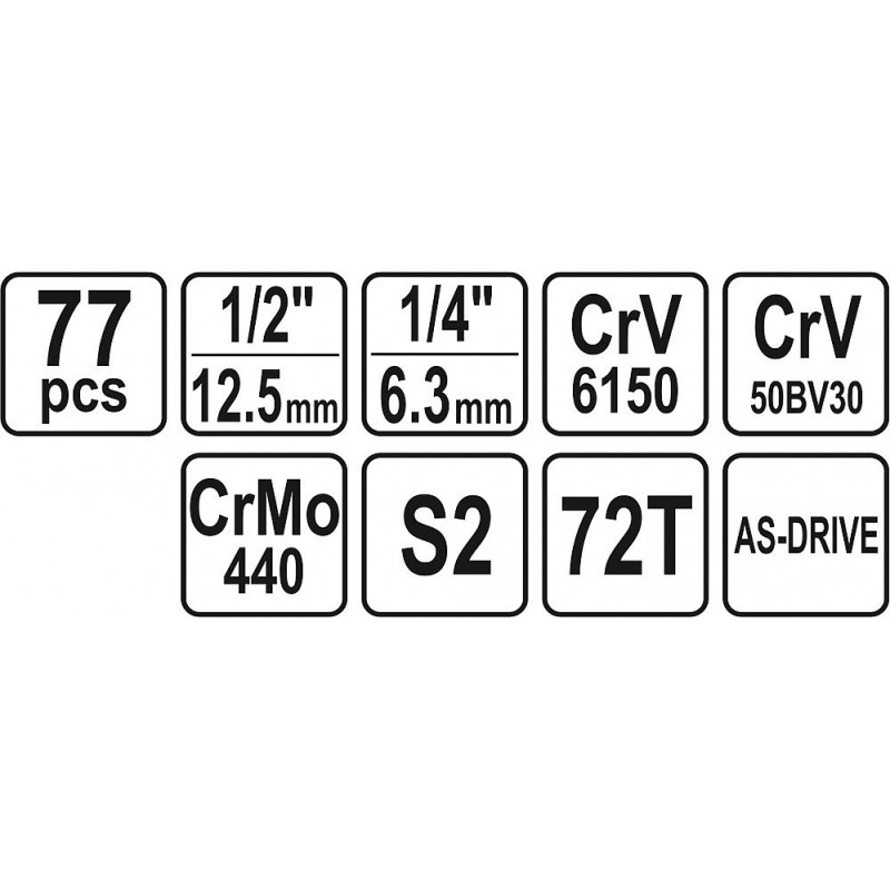 Gola sada 1/2", 1/4" 77-dílná, YATO
