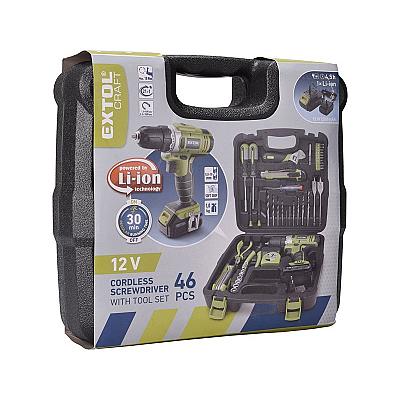 Sada nářadí 46 dílů s aku šroubovákem 12V, Extol Craft