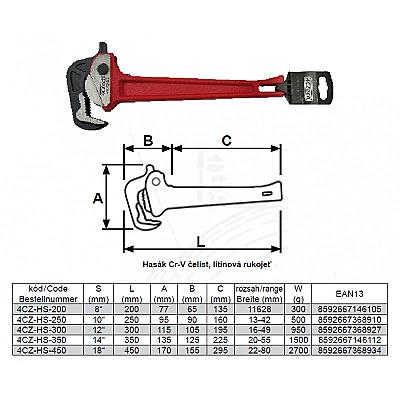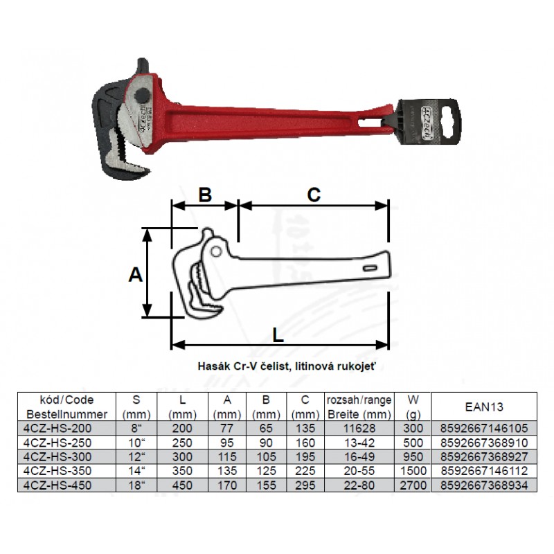 Hasák 10" (250 mm) Cr-V čelist, litinová rukojeť 4CZech