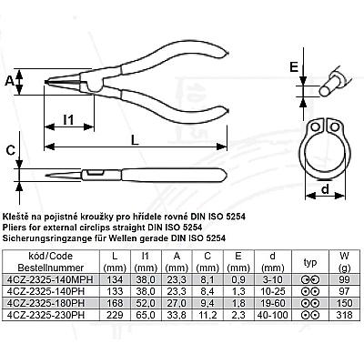 Kleště na pojistné kroužky pro hřídele rovné 230 mm, hrot 2,3 mm